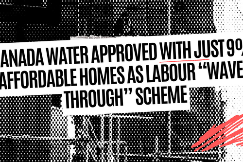 The Canada Water Masterplan has been approved – delivering just 9% affordable housing across the scheme, a dramatic drop from the 35% originally promised to residents.